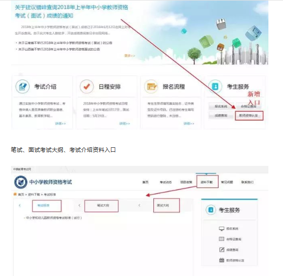 新增了教师资格认定入口,方便考生查询认定通知